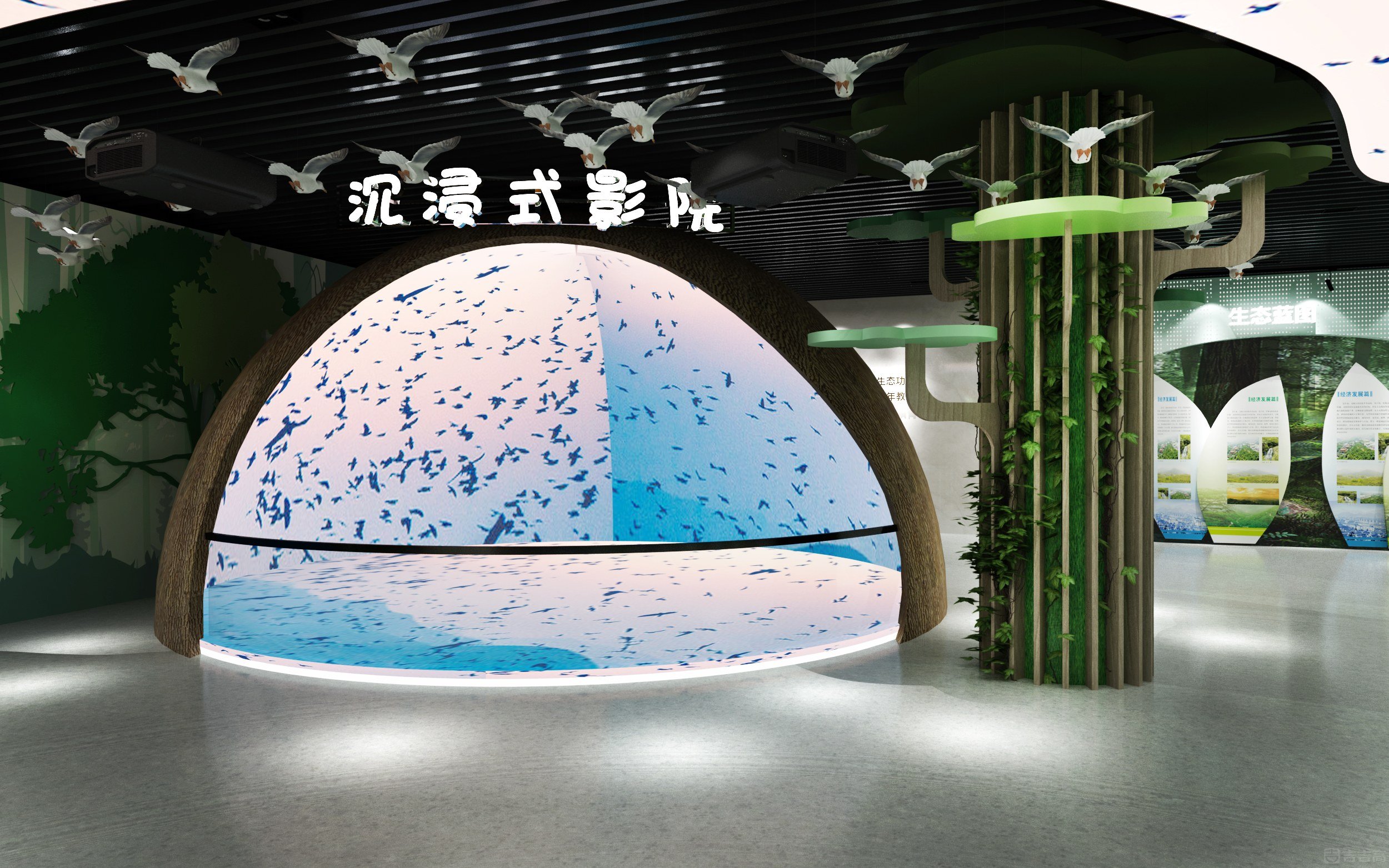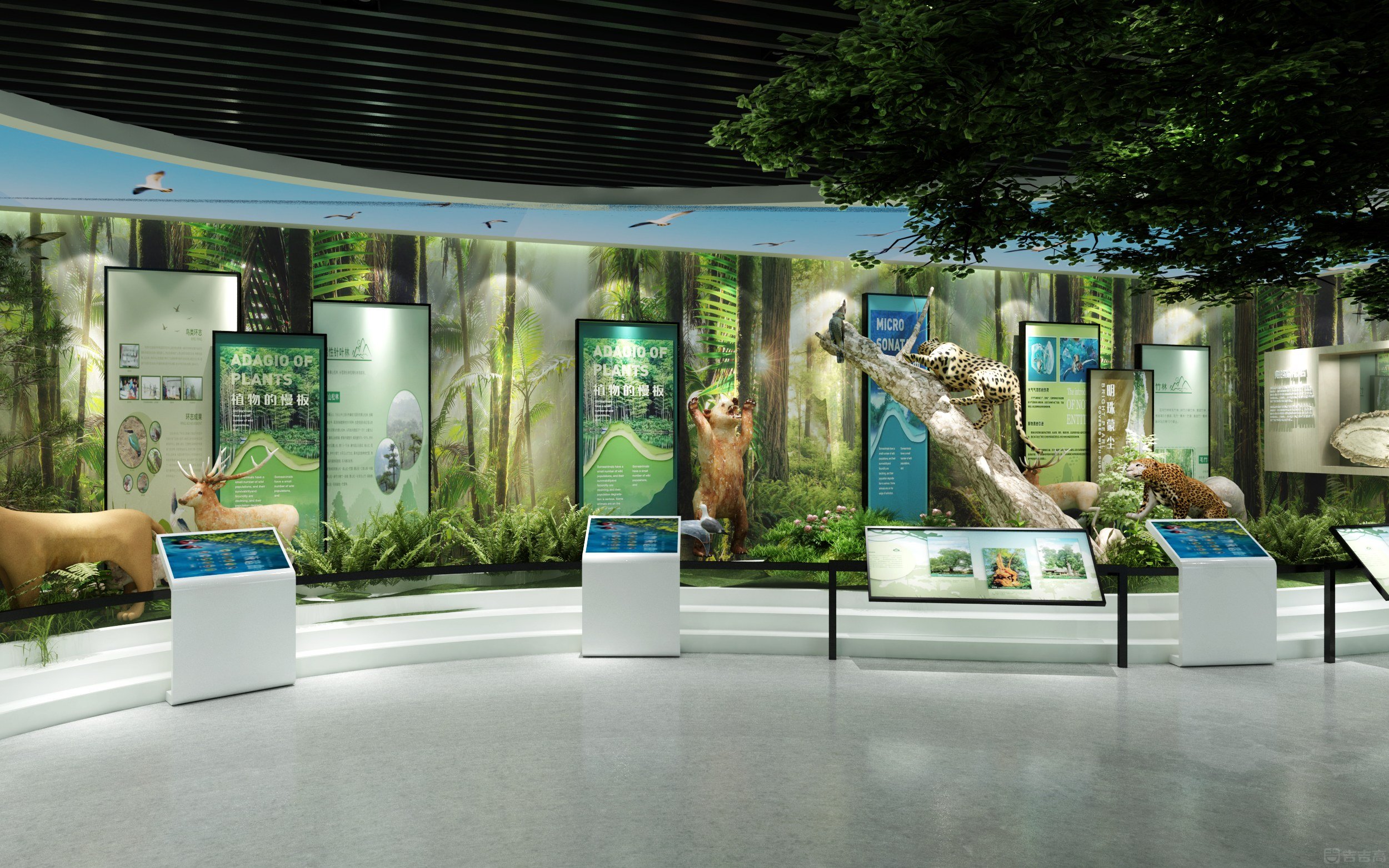 湖南桂東青竹屬亞熱帶季風性濕潤氣候,林地占比達 92.12%,森林保持原生態(tài),野生動植物種類繁多,條生物多樣性件好,是國內(nèi)既有國家級自然保護區(qū)又有國家級森林公園的唯一一個縣,獲得了“省級生態(tài)文明建設示范縣”生、“中國最佳態(tài)旅游示范縣”等榮譽稱號。該館以樹立和踐行綠水青山就是金山銀山為理念,以“我與自然和諧共處”為主題,通過“布局生態(tài)化、生態(tài)故事化、故事體驗化、體驗心靈化、心靈未來化”的展陳主線,分“總體概況、南嶺探秘、千年鳥道、道地藥材、都市自然、生態(tài)藍圖”六大展陳板塊,伴以認知式觀賞、互動式參與、沉浸式體驗等方式展現(xiàn)生態(tài)多樣性。
